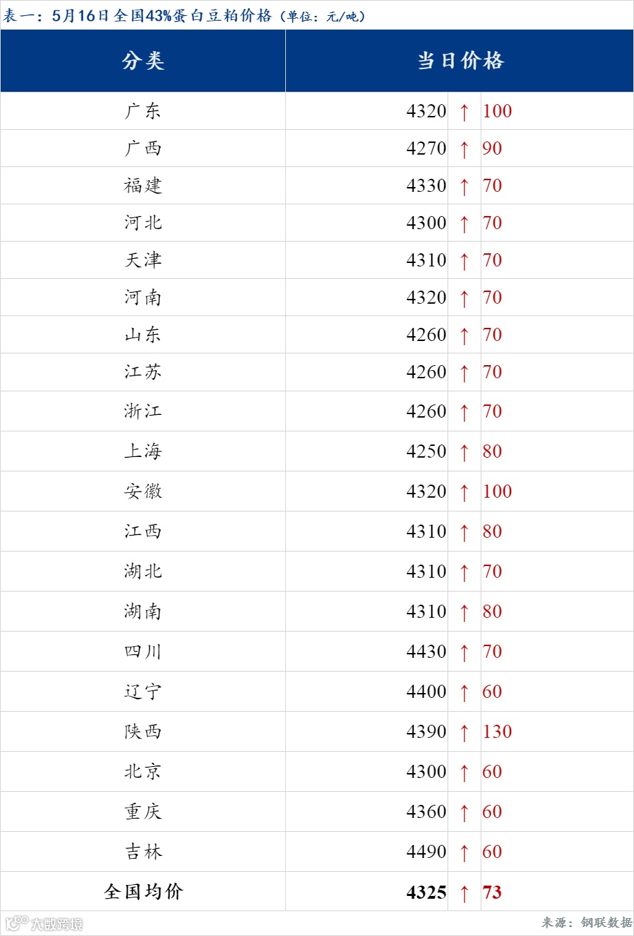 豆粕方面,16日油厂豆粕报价继续回升,沿海区域主流报价在4260-4310元/吨,广东4320涨100元/吨,江苏4260涨70元/吨,山东4260涨70元/吨,天津4310涨70元/吨。