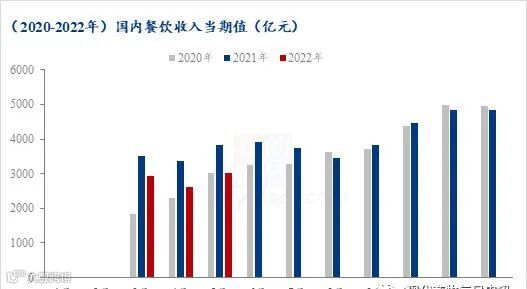 自新冠疫情之后,近两年的年内餐饮消费都是呈递增态势,下半年的餐饮收入要明显高于上半年,且餐饮收入的月度和季度的最高值都出现在第四季度。通过上图可以看出来,从3-5月份的餐饮收入看,2022年的餐饮需求高于2020年,低于2021年。