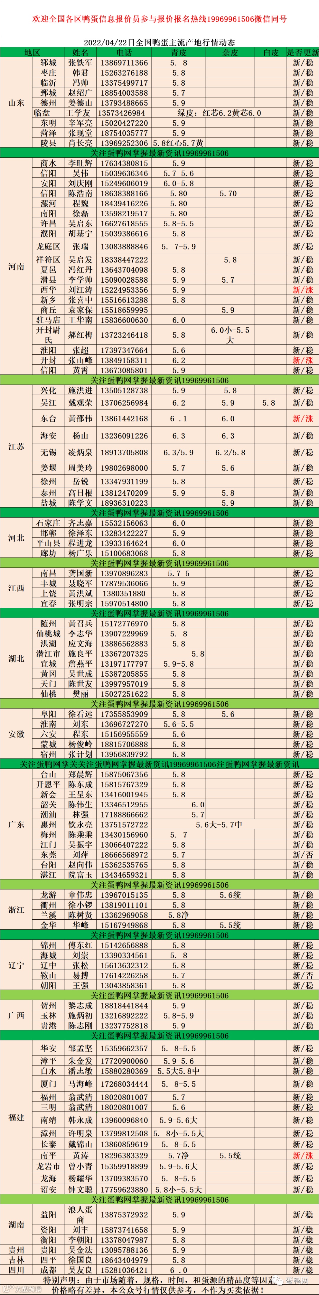 2022年04月22日鲜鸭蛋价格: