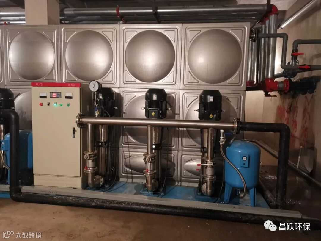 二次供水设备,一般设在地面或地下室。有自来水的单位,使用该设备可以调节高峰用水量,增加水压,能在高峰用水时,满足大面积用水和高楼层用水。没自来水的单位、工厂或农村,只需将该设备接通水源电源,即可得到稳定的水量水压,满足用水需要。