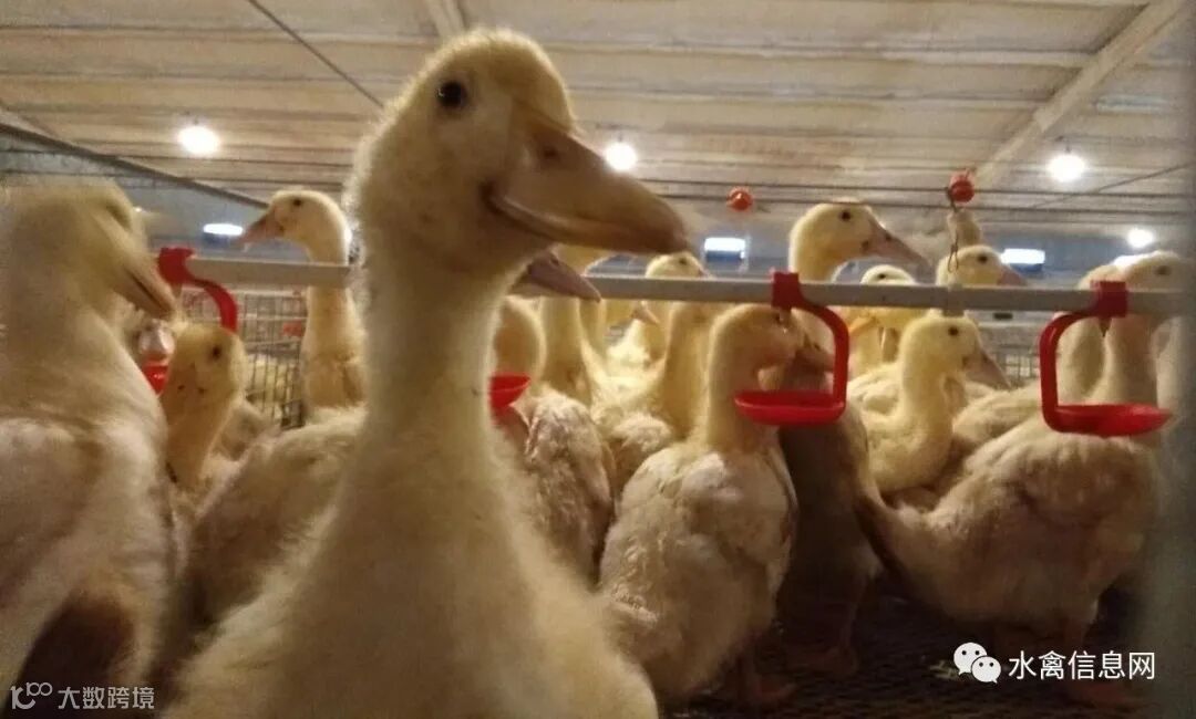 使用乳头水线的棚舍,高温天应注意检查水线后端乳头的下水情况,有必要测量一下乳头的下水量。乳头下水量应保持再每分钟70毫升以上,最好能达到100毫升以上。可以使用普通矿泉水瓶500毫升瓶,按住后端乳头5分钟接满瓶,说明下水量良好,超过6分钟接满,就要注意检查水线是否有堵塞或者水压过低的情况了。热天鸭子饮水多,前排鸭子大量喝水时,过长的水线或压力不稳定的水线很容易出现后端出水量不足的情况,引发重大的安全问题。