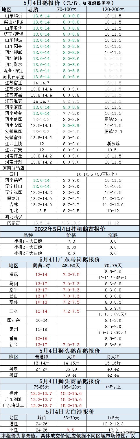 2022年5月04日各品种鹅苗价格