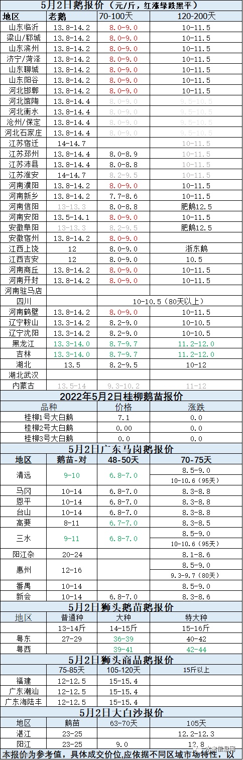 2022年5月02日各品种鹅苗价格
