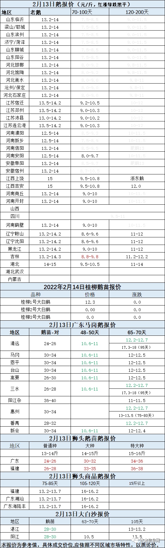 2022年2月13日各品种鹅苗价格