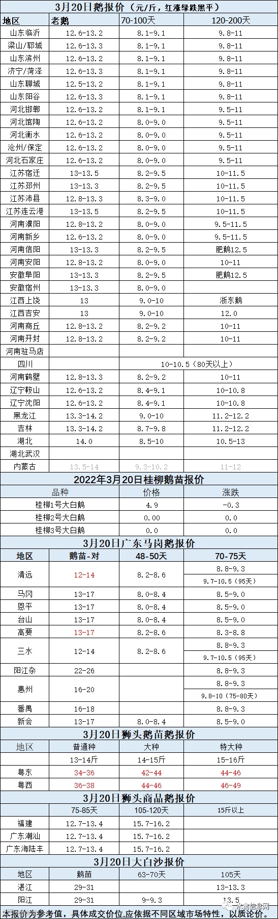 2022年3月20日各品种鹅苗价格