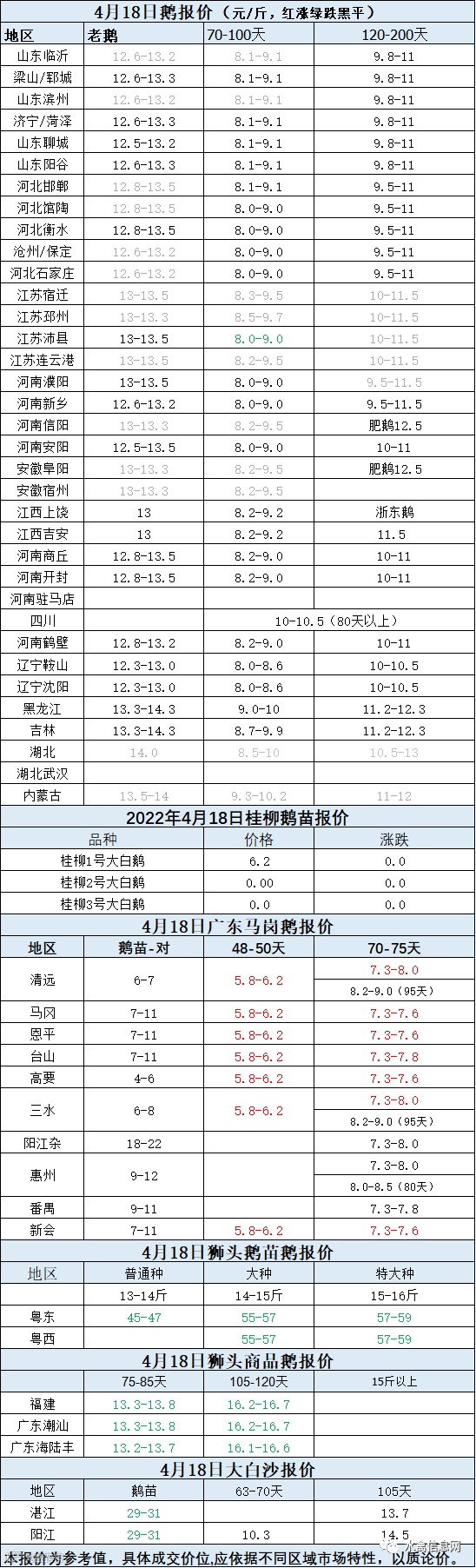 2022年4月18日各品种鹅苗价格