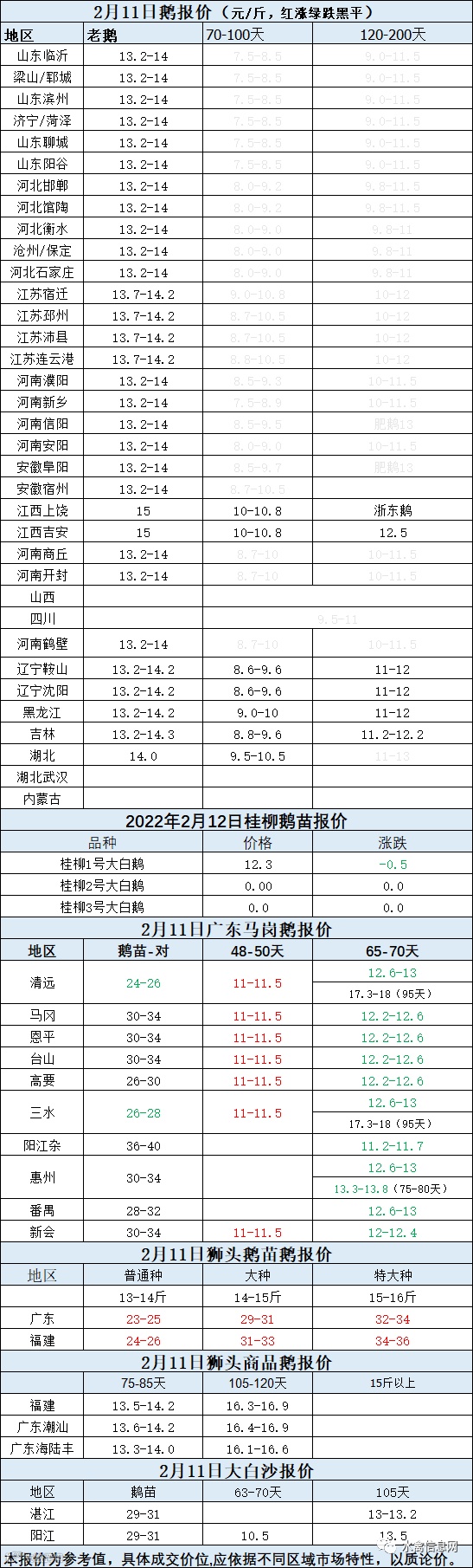 2022年2月11日各品种鹅苗价格