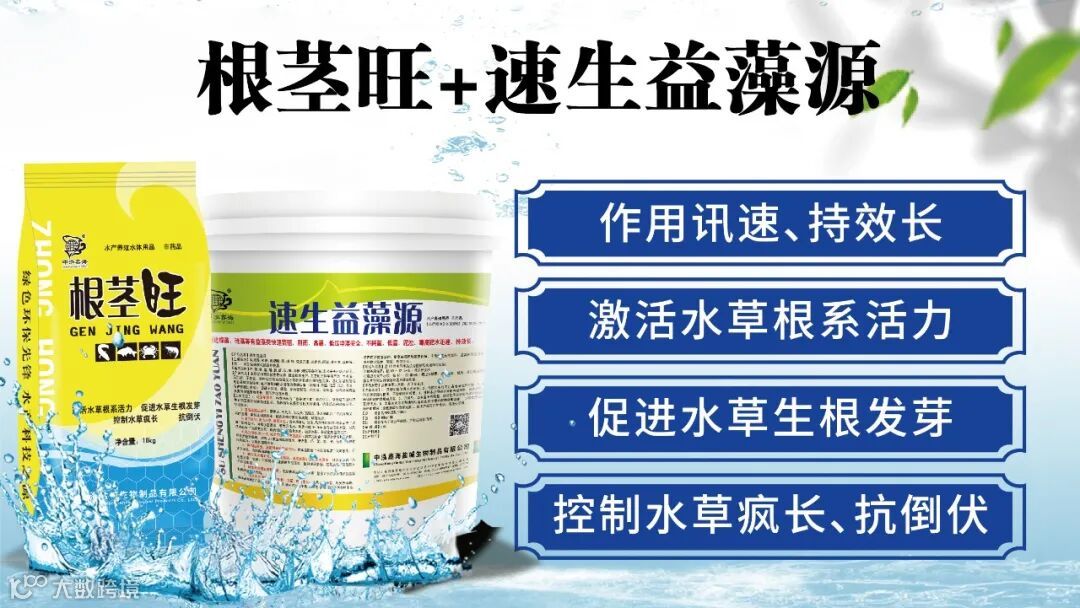 (1)以伊乐藻为主的塘口,当伊乐藻发黄发黑后要立即捞出,对于有白根的水草,要及时调控水质,可以使用“根茎旺+速生益藻源”恢复水草活力,促进水草生根发芽,延迟休眠期,稳定水质。