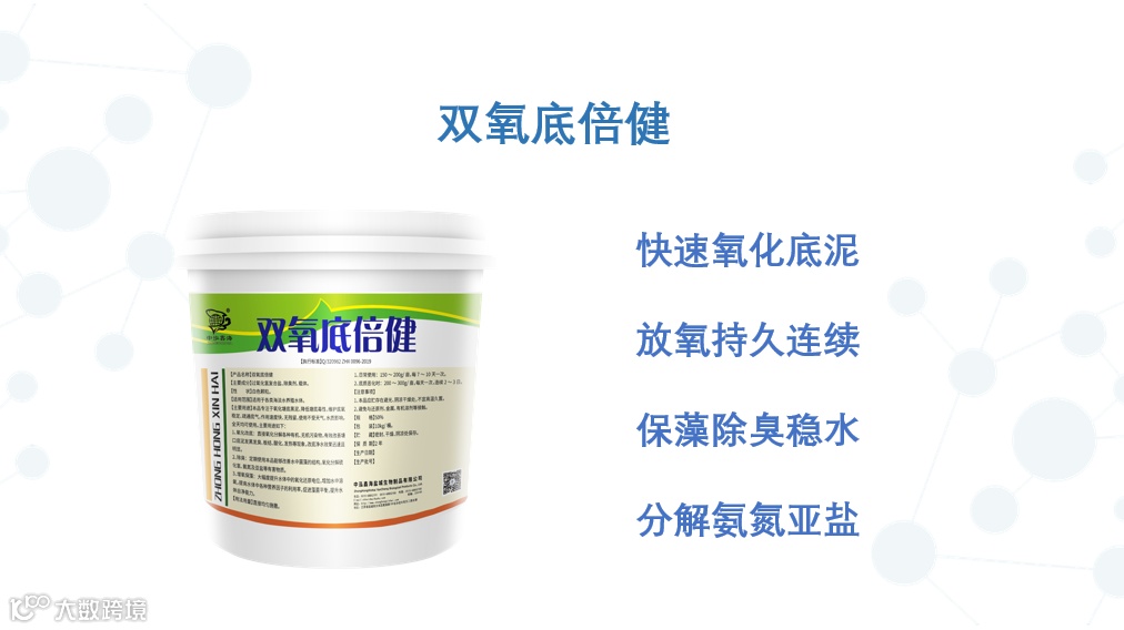阶段二:在使用过硫酸氢钾复合盐之后的48小时之内搭配补充使用生物型的底改,即完成一次底改,根据池塘情况每周如此循环2-3次。