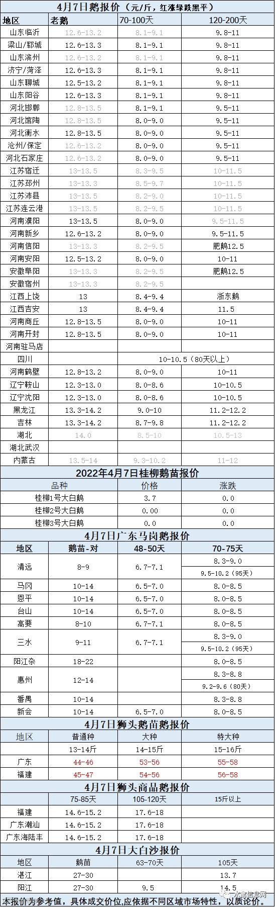 2022年4月07日鹅种蛋价格(元/枚)部分停报