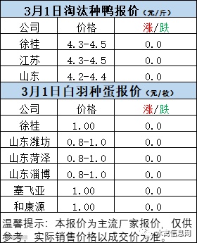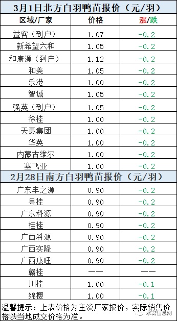 一、2022年3月1日白羽鸭苗报价