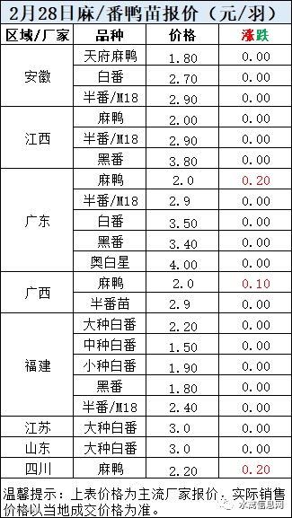 一、2月28日晚至3月1日 白羽肉鸭报价