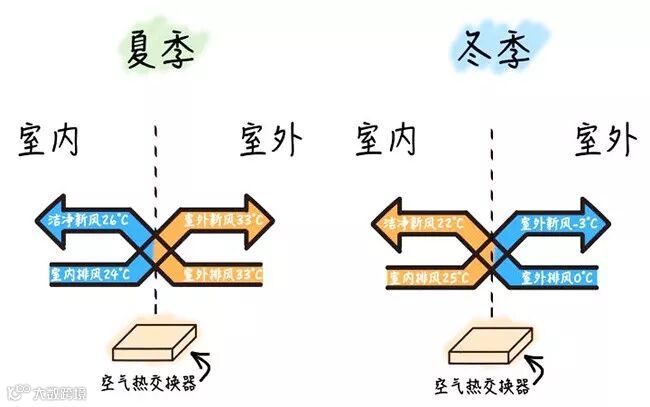 双向流新风系统:与单向流新风系统的自然强制送风相比,双向流新风系统采用的是机械送风。双向流新风机具有独立的排风及送风系统,受污染的空气从排风口、排风管道及排风机排到室外,室外的新鲜空气通过送风机、送风管道和送风口进入室内。