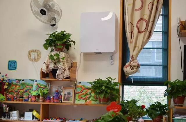 无管道新风系统:已经装修好的幼儿园教室里只能安装无管道新风系统。挂在墙上的小巧新风系统不占地面空间,安装很简单,操作方便,而且冬天送入的空气都可以加热到舒适温度。
