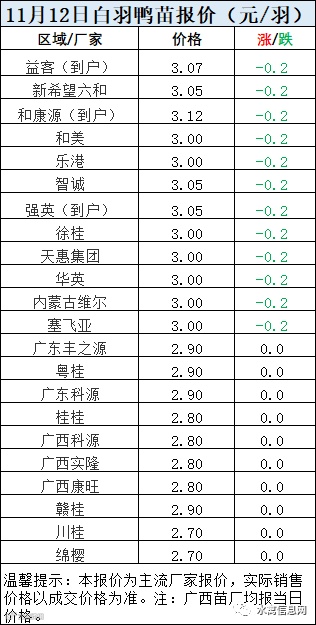 一、11月12日白羽鸭苗报价