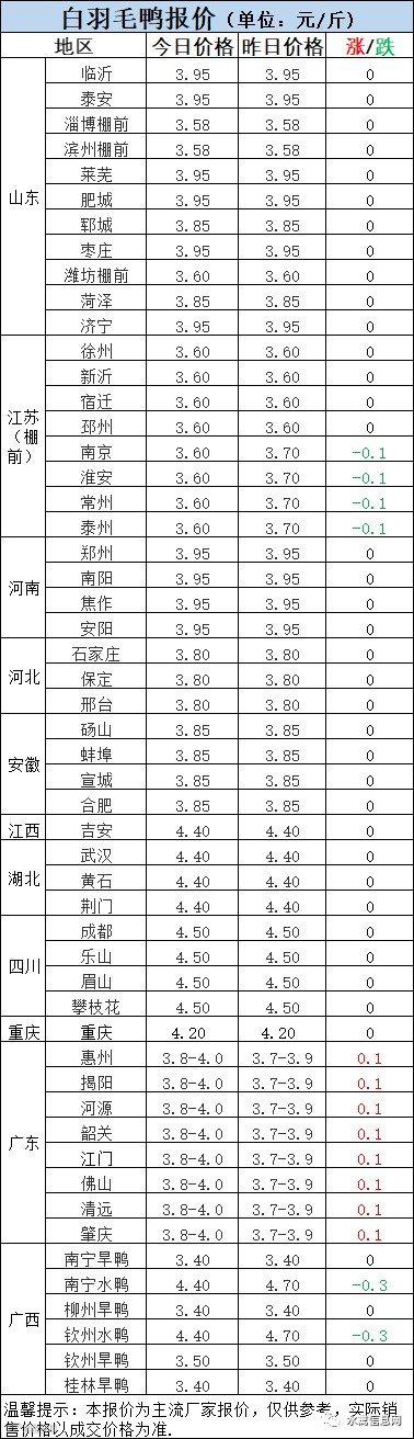 1:今晚北方毛鸭报价弱稳为主,局部追跌。
