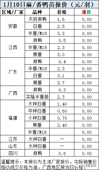 明日麻鸭苗报价弱稳。半番鸭苗报价稳定。