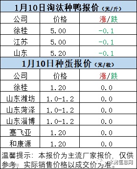 一、1月9日晚至1月10日 白羽肉鸭报价