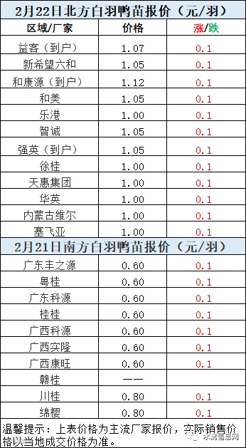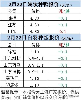 一、2月21日晚至2月22日 白羽肉鸭报价