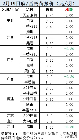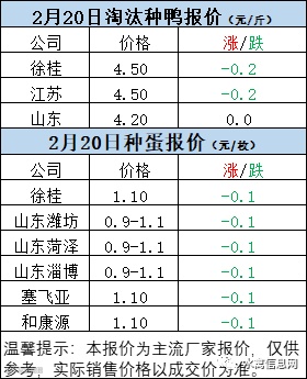 一、2月19日晚至2月20日 白羽肉鸭报价