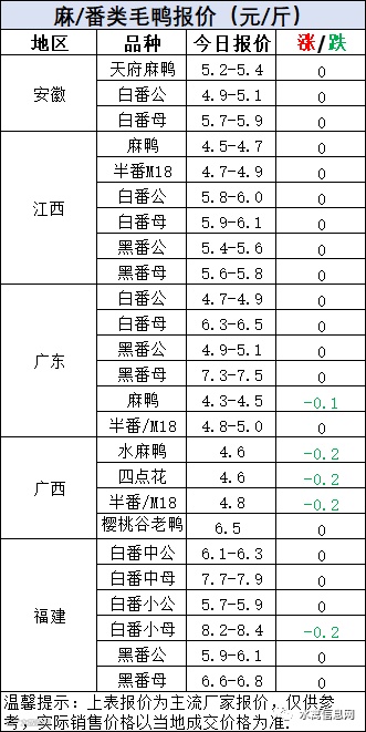 南方毛鸭报价稳定波动为主。