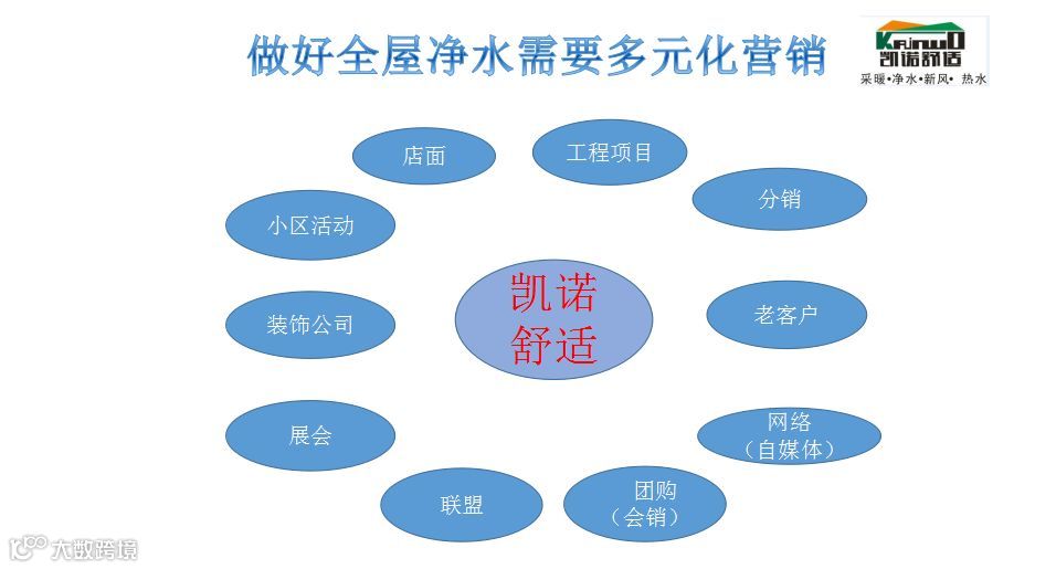 我从五个方面进行讲述:第一个是关于凯诺的情况,第二个是选好全屋净水品牌,第三个是全屋净水的营销多元化,第四个是全屋净水方案配置系统化,第五个是完善售后增加品牌价值。