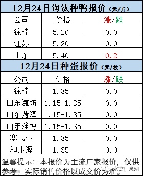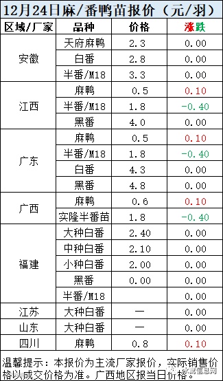 一、12月24日白羽鸭苗报价