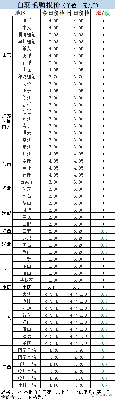1:今晚北方毛鸭报价低位震荡,弱势调整。