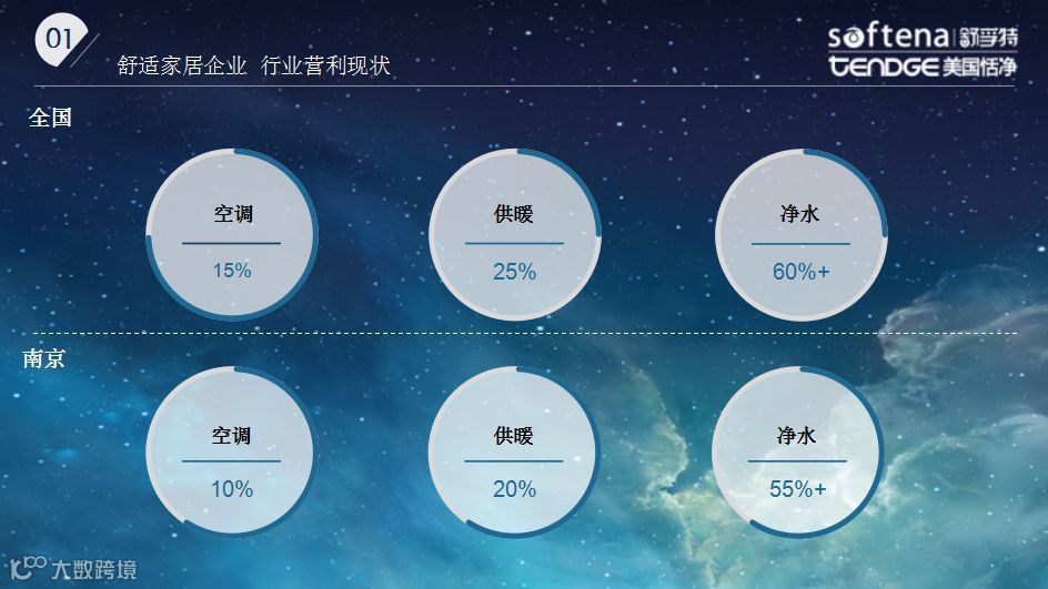 这个数据可能有点落后了,时间节点是去年12月份,现在未必还是这个数,所以这只是一个参考数据。全国空调15%的毛利润,供暖25%,净水60%以上。而南京空调10%,供暖20%,净水55%以上。这样一个数据引发的思考是什么?