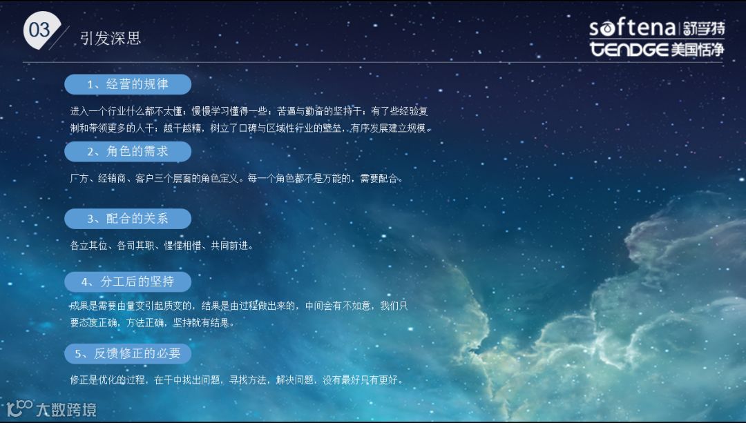 同时,正因为处于这样一个竞争环境,我觉得我们恬净会变得更加强大。所以我带来了我们内部的一个PPT,里面讲了很多营销方法论的精髓,希望能给大家带来帮助。