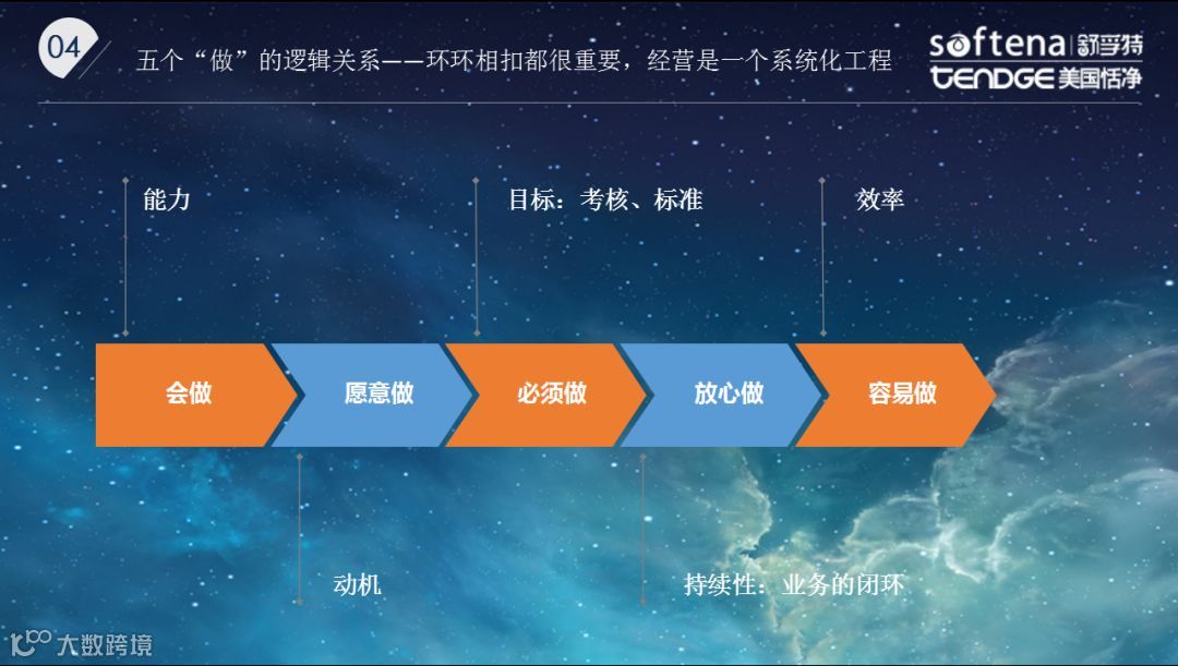 经营的思维导图。我们总结了五个“做”:会做、愿意做、必须做、放心做、容易做。
