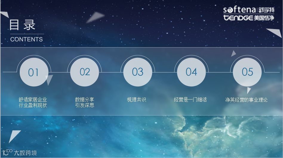 下面我从五个方面讲一下我们深度经营的内容:第一,我们行业的现状;第二,我们样板库的数据给我们带来的思考;第三,我们要梳理一种共识;第四,完成一种认知;第五,讲我们自己的事业理论。
