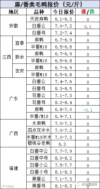 明日麻鸭苗报价大幅下滑。半番鸭苗报价稳定。