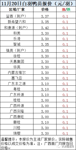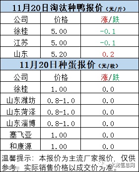 一、11月20日白羽鸭苗报价