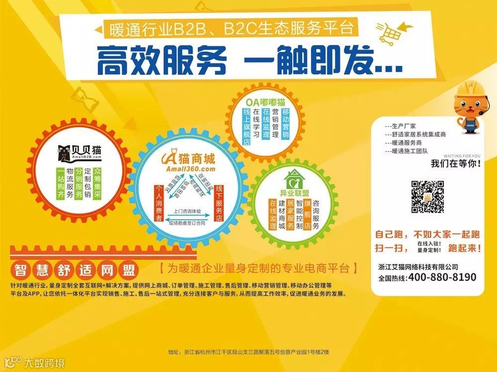 为了方便大家在网上销售产品,A猫提供一站式的居家服务平台,以智慧舒适家居为入口打造居家服务生态圈,为用户提供环保建材、居家生活、家庭金融、私人订制、装饰设计、旧房翻新等全方位的服务。