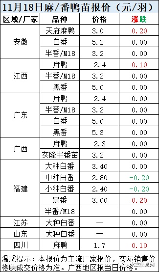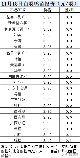 一、11月18日白羽鸭苗报价