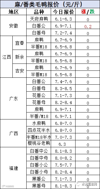 明日麻鸭苗报价稳定。半番鸭苗报价稳定。