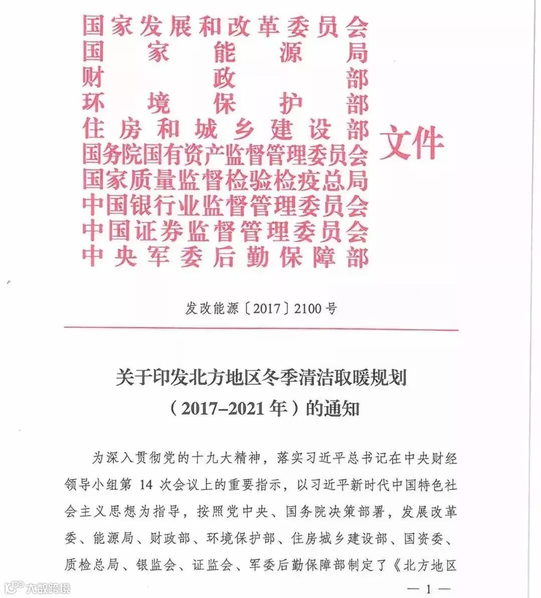 10部委共同发布《北方地区冬季清洁取暖规划(2017-2021)》