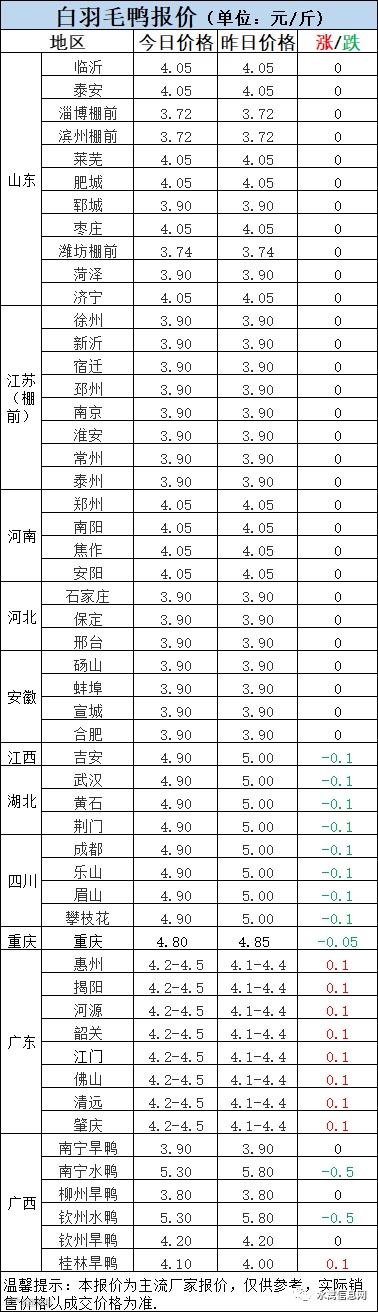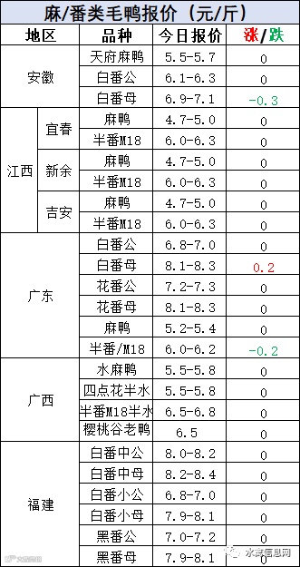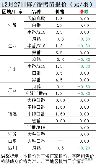 明日麻鸭苗报价下滑0.2-0.3元/羽。半番鸭苗报价下滑0.3元/羽。