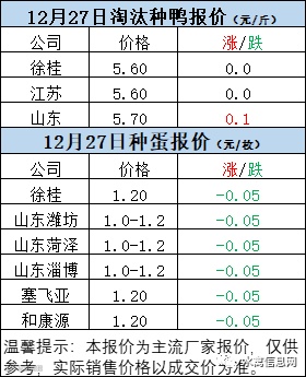 一、12月26日晚至12月27日 白羽肉鸭报价