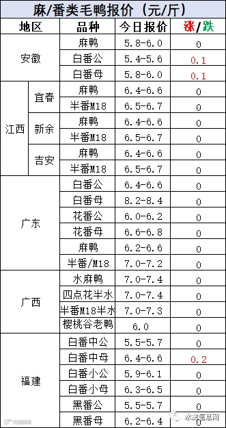 明日麻鸭苗报价上涨0.1元/羽,半番鸭苗报价稳定。