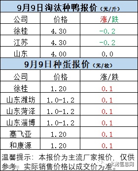 一、9月8日晚至9月9日 白羽肉鸭报价