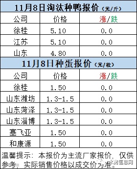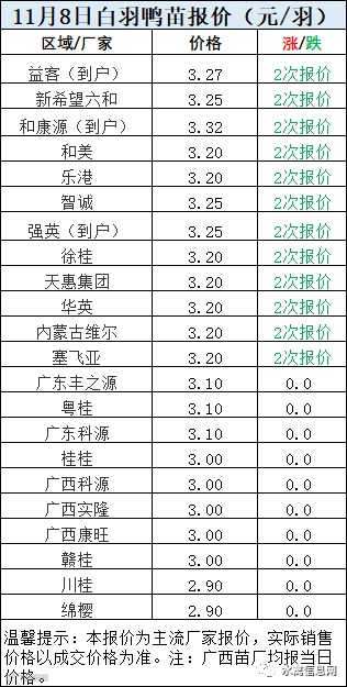 一、11月7日晚至11月8日 白羽肉鸭报价
