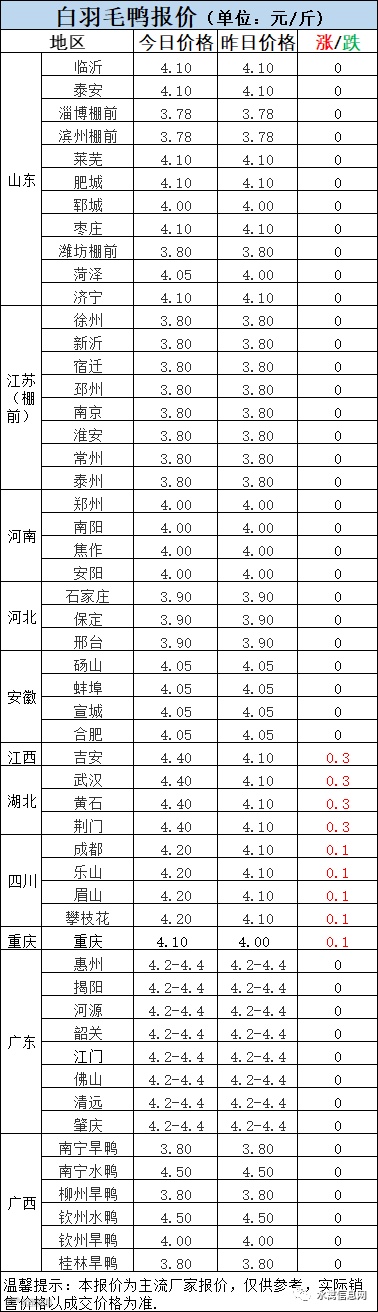 1:今晚北方毛鸭报价稳定,局部涨跌调整。