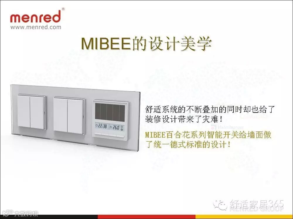 林晨同时介绍了mibee ——menredintelligent bee system蜂巢绿色智能控制系统。“我把家居这两个字去掉了,因为智能系统如果仅仅只在家居层面,那么是很局限的。她的诞生并不是以“智能”为初衷,虽然她可以很智能。”从林晨的介绍中我们知道这款产品具有绿色技术、设计美学、安装方便等特点。