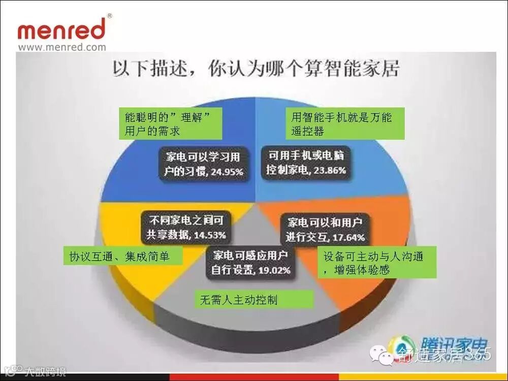 既然大部分人对智能家居系统感兴趣,那么问题来了,怎样才是一个好的家居系统?“25%的人认为它要会学习用户的习惯,能聪明地理解用户的需求;可以用手机和电脑控制家电,这也符合大多数家居智能厂商的一个理念——手机就是万能遥控器。家电可以和用户进行交互,设备能够主动地和人沟通,增强家居智能系统的体验感。”