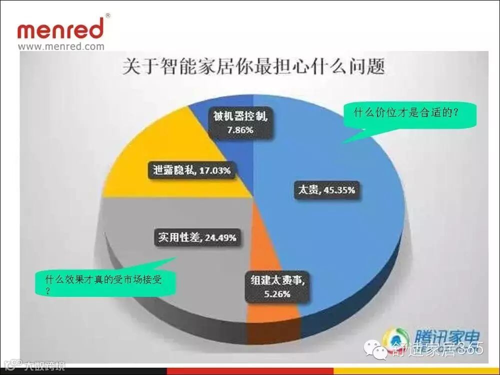 对于智能家居系统客户最在意的是什么呢?林晨说道:“45%的人担心“贵”。24.3%的人担心实用性差。”这也是以后众多家居智能行业的从业者未来的着力点所在。