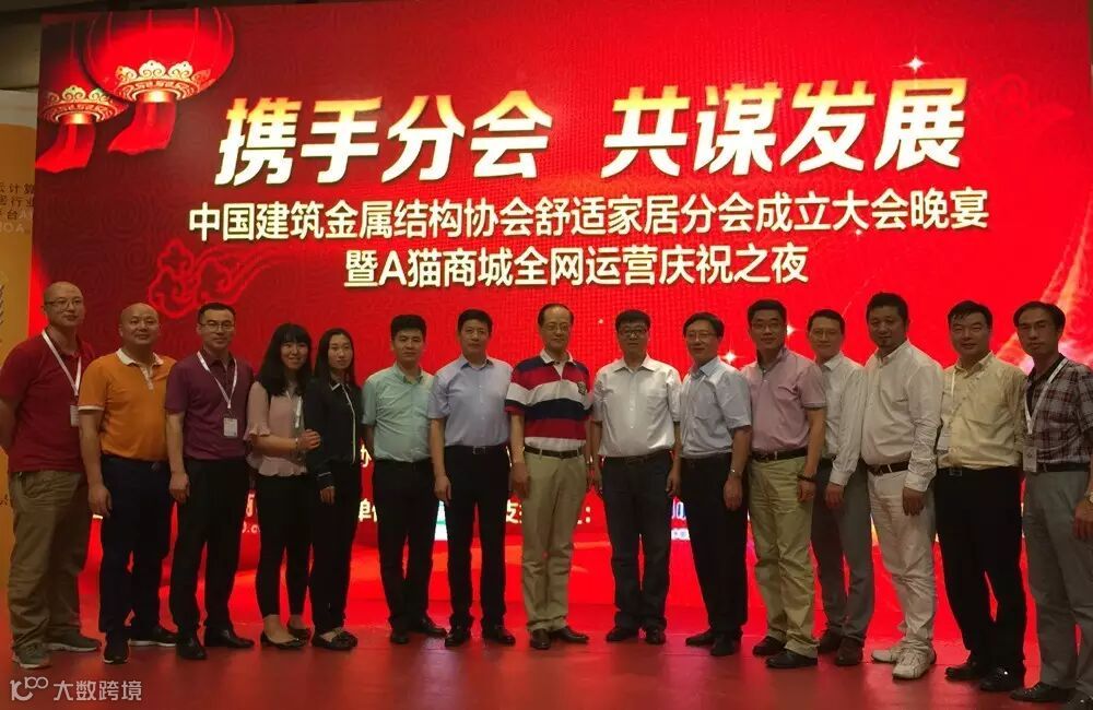 随后,全体与会领导嘉宾合影留念并前往临空皇冠假日酒店共享“中国建筑金属结构协会舒适家居分会成立大会晚宴暨A猫商城全网运营庆祝之夜”。