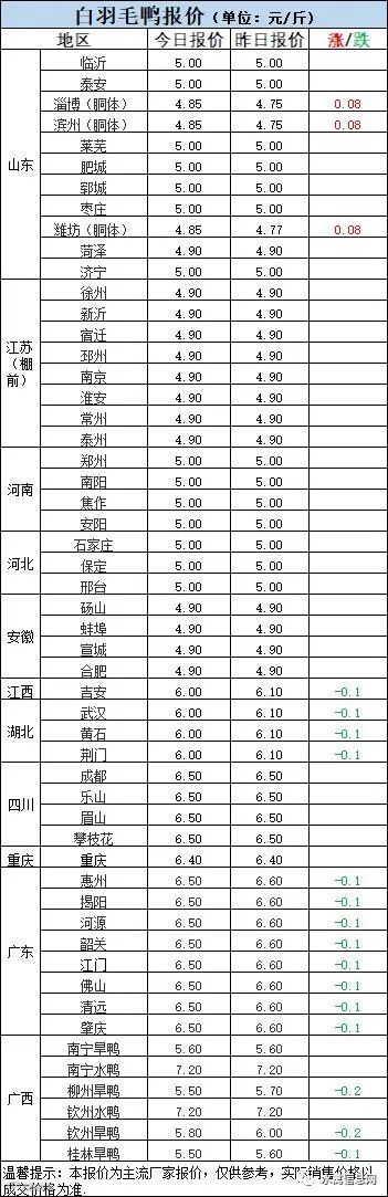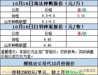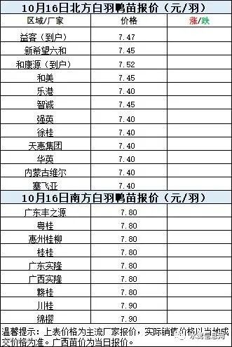 一、10月15日晚至10月16日 白羽肉鸭报价;