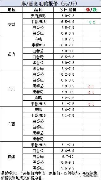 麻鸭苗报价以稳为主,局地上涨;半番鸭苗稳定;